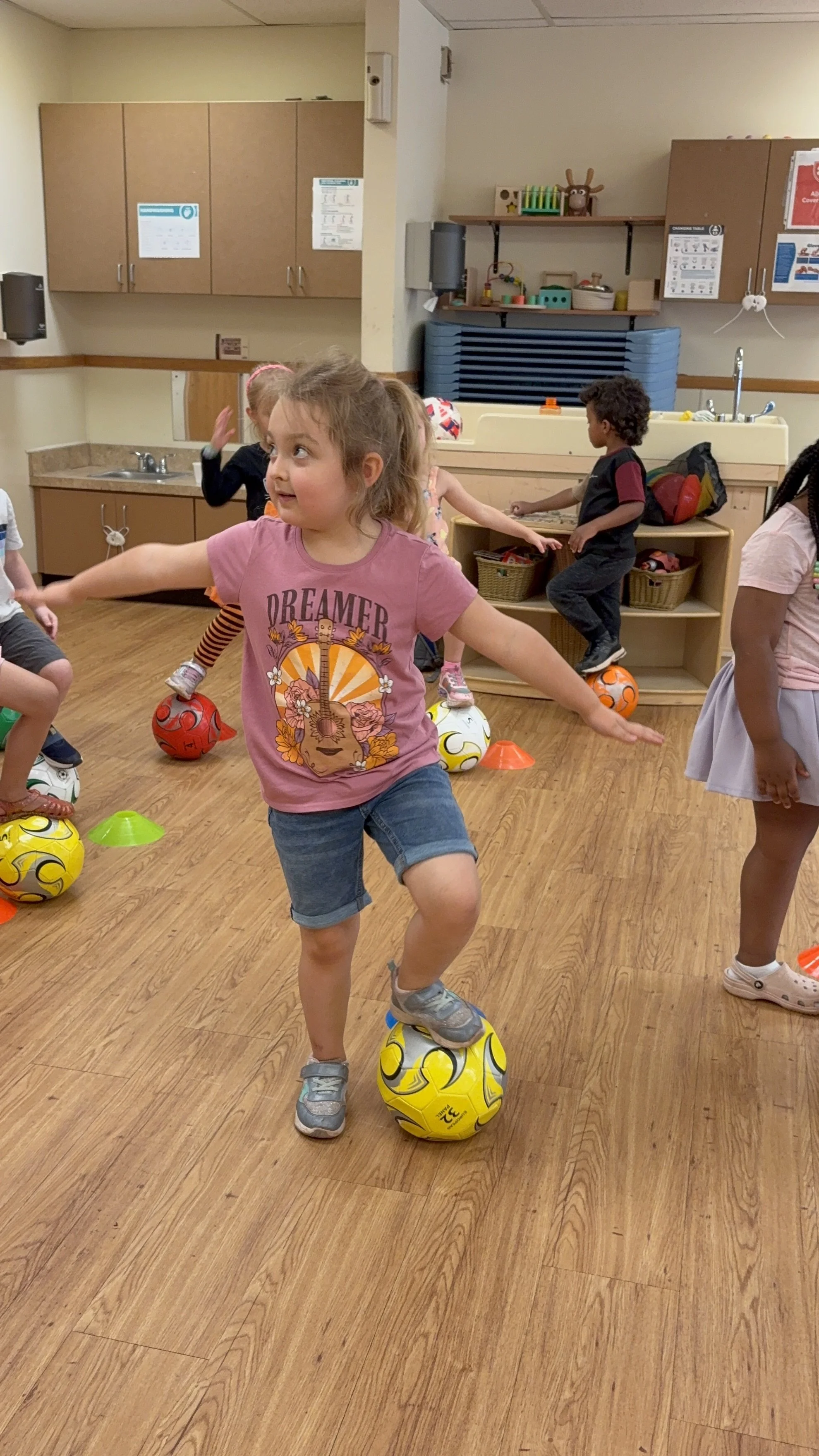 Dribbling, passing, turning, and shooting with soft, kid-friendly soccer balls. Focus on fundamental soccer techniques.